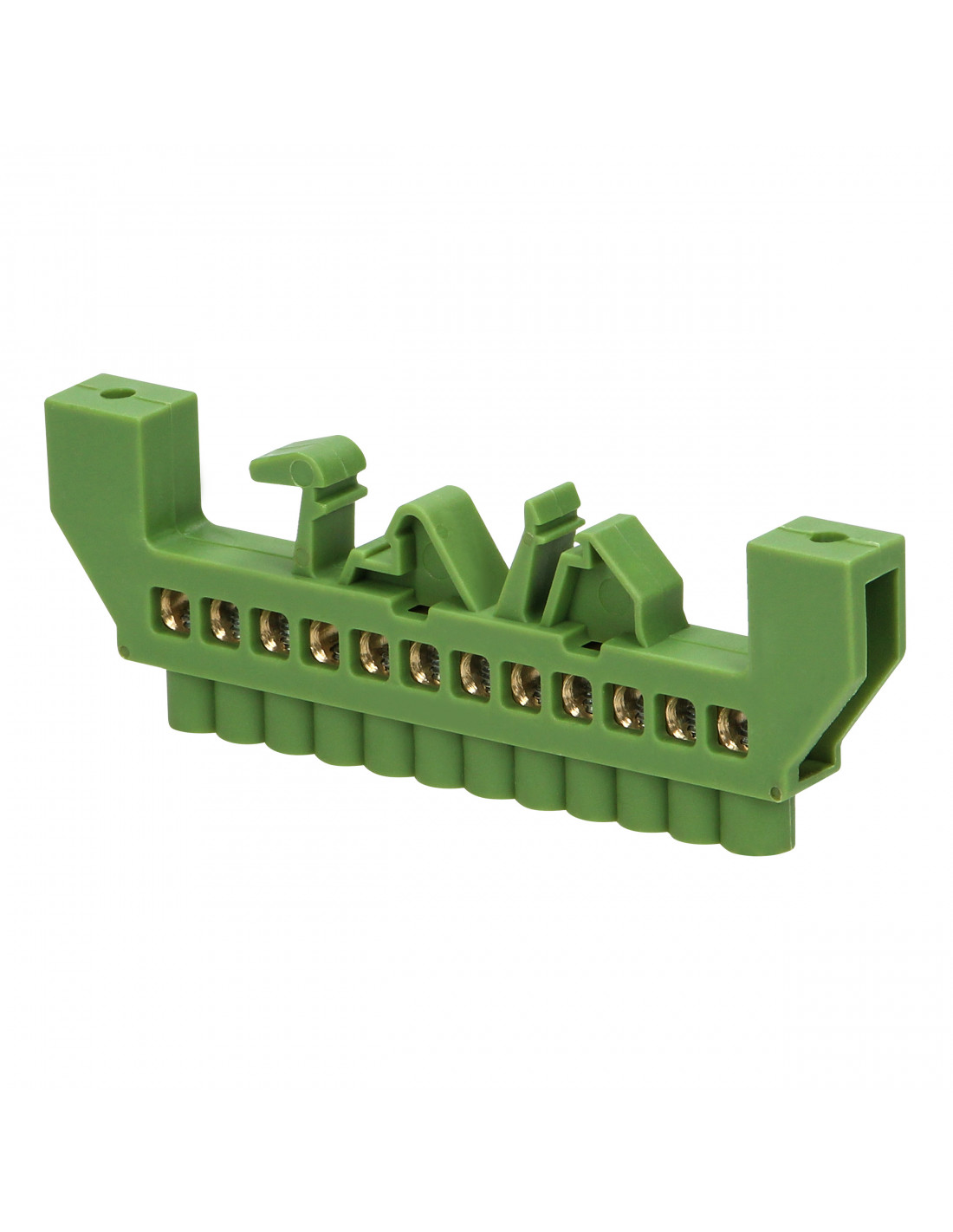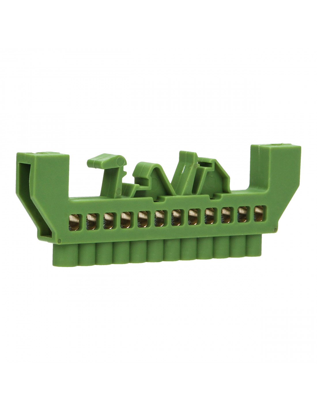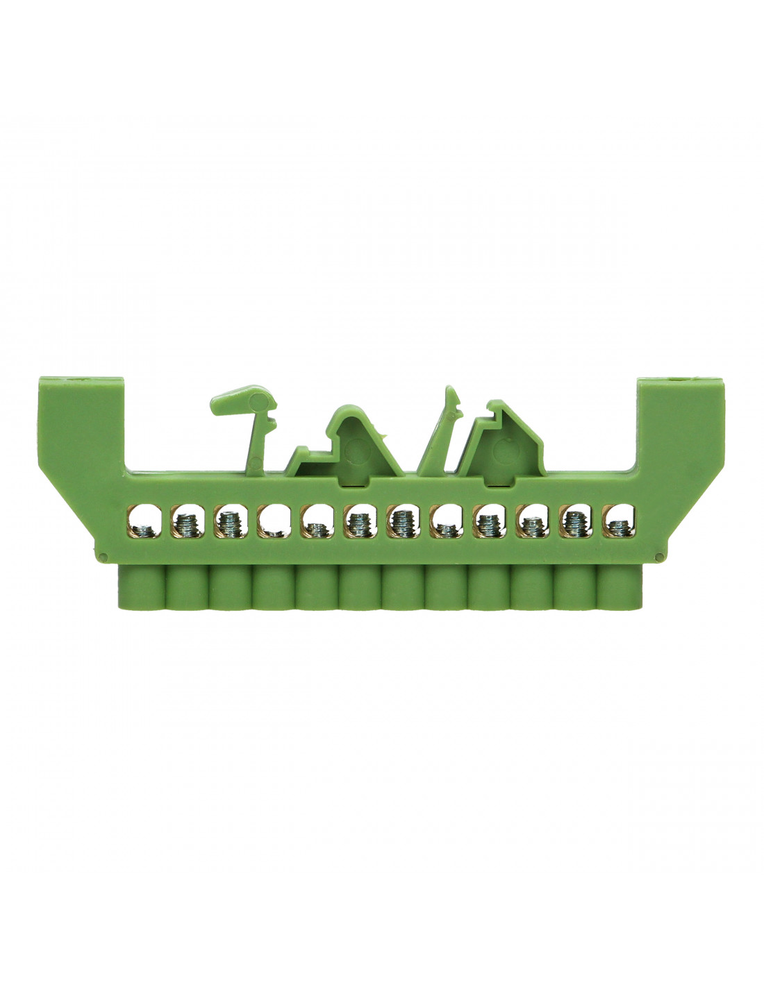 Listwa zaciskowa izolowana do przewodu uziemiającego (zielona). Stosowana w rozdzielniach elektrycznych ułatwia rozdział potencjałów i okablowania. Izolacja listwy zmniejsza ryzyko przypadkowego doziemienia. Nadaje się do montażu na szynę DIN lub płytę montażową.