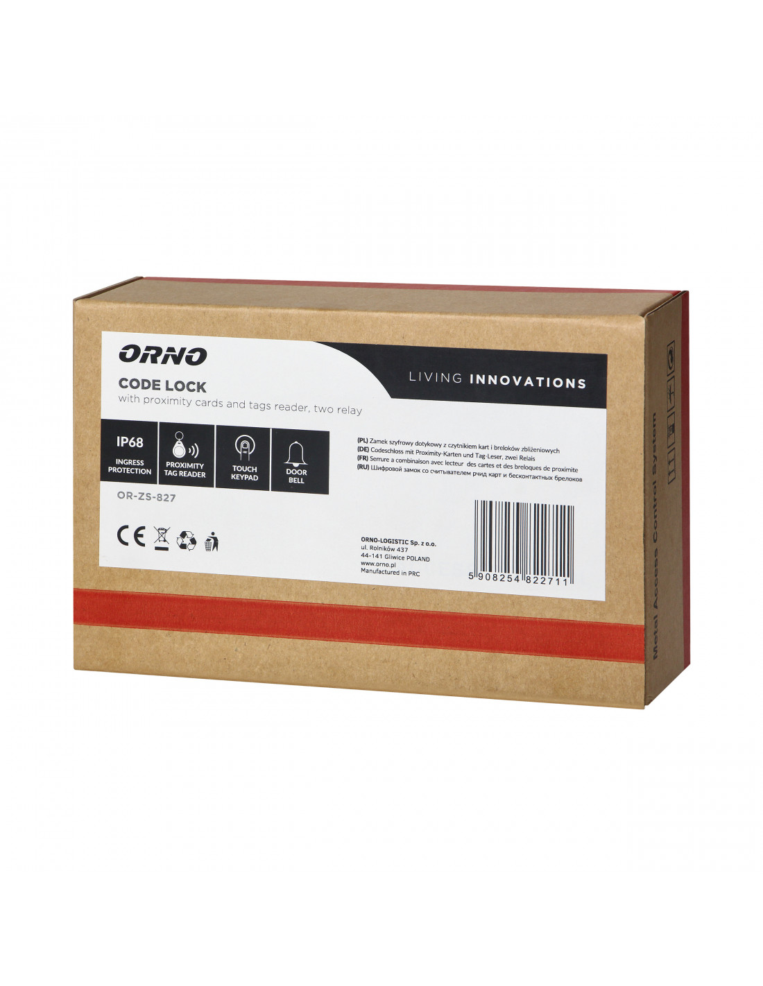 Autonomiczny zamek szyfrowy łączy w sobie funkcję dotykowej klawiatury kontroli dostępu, czytnika kart i breloków zbliżeniowych oraz czytnika linii papilarnych. To nowoczesne urządzenie współpracuje z elektromagnetycznymi zamkami, w których stosuje się system kontroli dostępu. Może również sterować innymi urządzeniami elektrycznymi lub alarmowymi. Zamek ma 2 wyjścia przekaźnikowe, które pozwalają na przykład sterować dostępem do furtki i bramy wjazdowej z poziomu zamka szyfrowego. Uprawnione osoby mogą wejść do pomieszczenia lub budynku po odczytaniu karty, wprowadzeniu kodu dostępu lub po zeskanowaniu zapisanego wcześniej odcisku palca. Nieulotna pamięć EPROM zapamiętuje zapisane kody i parametry w pamięci przy zaniku napięcia. Ponadto pod czytnikiem linii papilarnych znajduje się standardowy przycisk dzwonka, z którego mogą korzystać obce osoby. Obudowa zamka jest wyjątkowo wytrzymała i odporna na zmienne warunki atmosferyczne. Zamek nadaje się do montażu natynkowego. Świecące diody LED sygnalizują stan pracy szyfratora. W zestawie dwie karty (OR-ZS-892) oraz dwa breloki (OR-ZS-890) zbliżeniowe.