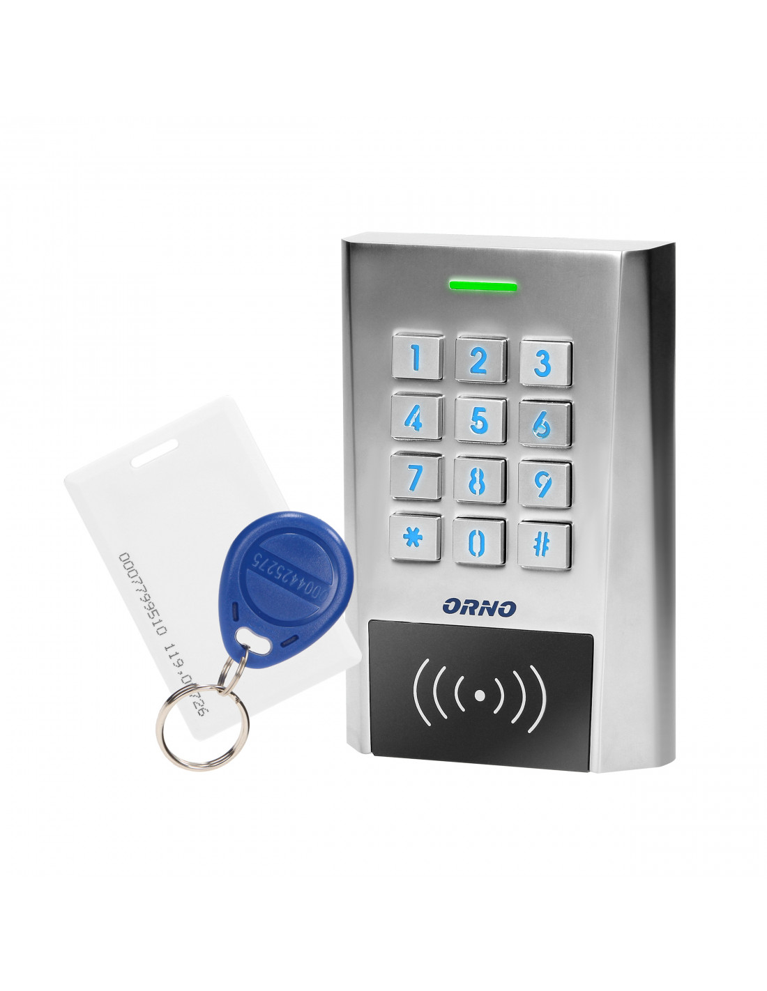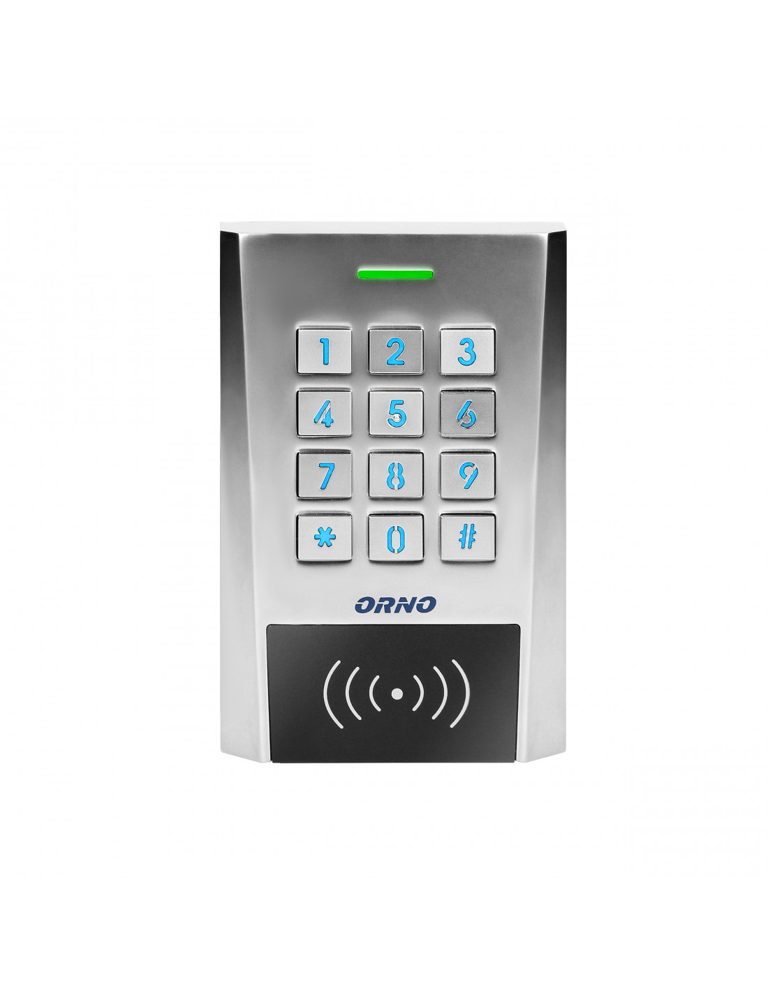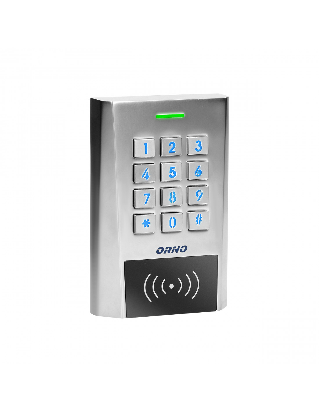 Elegancki zamek szyfrowy w szerokiej aluminiowej obudowie łączy w sobie funkcje cyfrowej klawiatury kontroli dostępu oraz czytnika kart i breloków zbliżeniowych. To nowoczesne urządzenie współpracuje z elektromagnetycznymi zamkami, w których stosuje się system kontroli dostępu. Może również sterować innymi urządzeniami elektrycznymi lub alarmowymi. Zamek ma 2 wyjścia przekaźnikowe oraz czytnik kart i breloków zbliżeniowych. Uprawnione osoby mogą wejść do pomieszczenia lub budynku po odczytaniu karty lub po wprowadzeniu kodu dostępu. Nieulotna pamięć EPROM zapamiętuje zapisane kody i parametry w pamięci przy zaniku napięcia. Klawiatura zamka jest podświetlana, dlatego wprowadzanie kodów po zmroku nie stanowi problemu. Jej wytrzymała obudowa sprawia, że jest wyjątkowo odporna na zmienne warunki atmosferyczne. Zamek nadaje się do montażu natynkowego. Świecące diody LED sygnalizują stan pracy szyfratora.