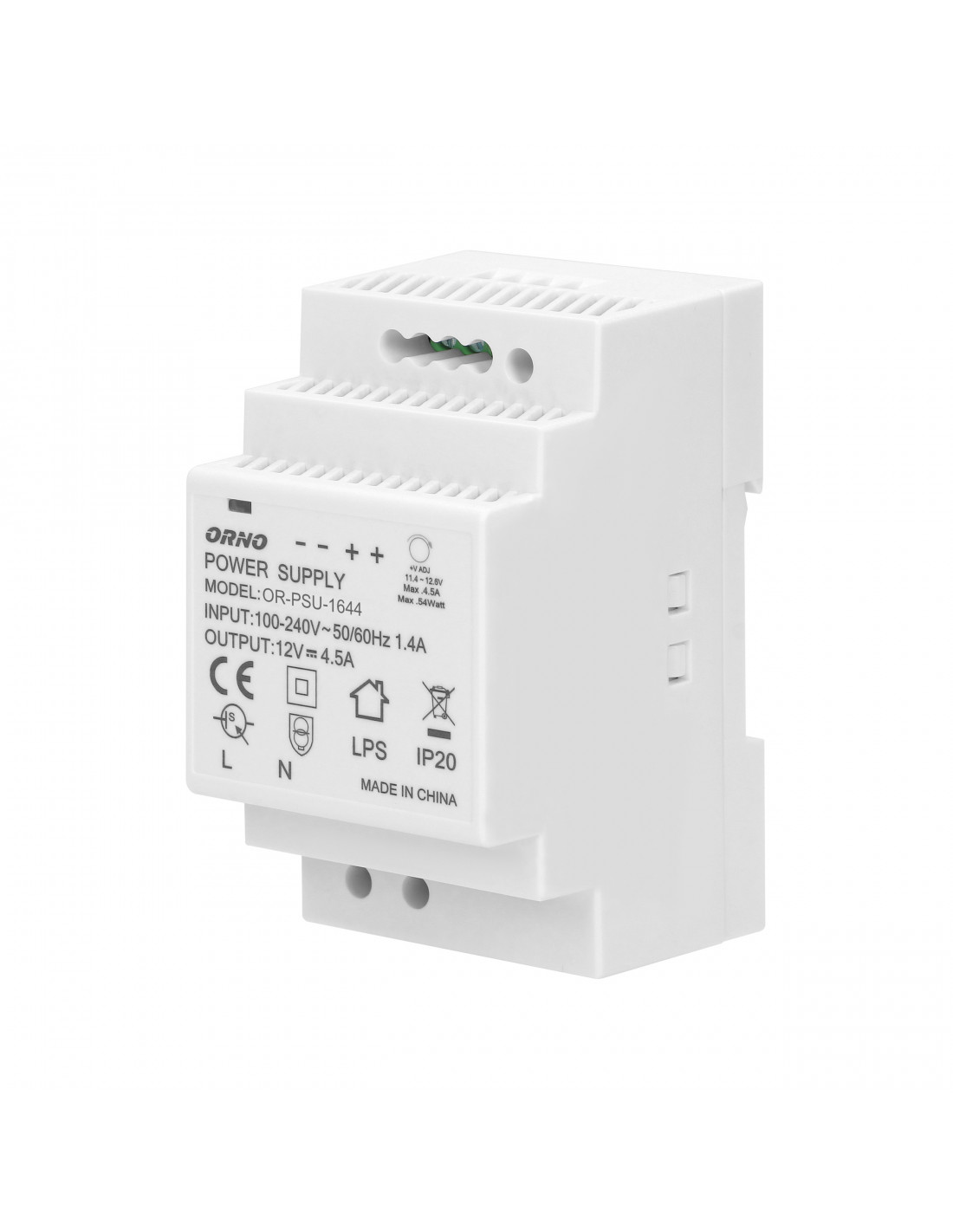 Wysokowydajny, charakteryzujący się stabilną pracą zasilacz o mocy 54W i napięciu wyjściowym 12V DC, istnieje możliwość regulacji napięcia wyjściowego. Zasilacz został zaprojektowany do montażu na szynę DIN i ma szerokie możliwości zastosowania, np. aplikacje przemysłowe, instalacji niskonapięciowych takich jak CCTV czy systemy alarmowe. Zasilacz posiada zabezpieczenia: przeciążeniowe, zwarciowe i nadnapięciowe. Załączenie zasilacza sygnalizuje dioda.