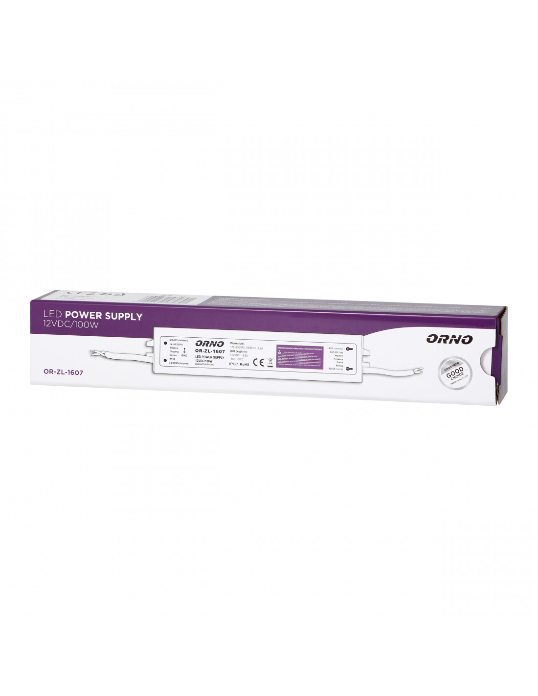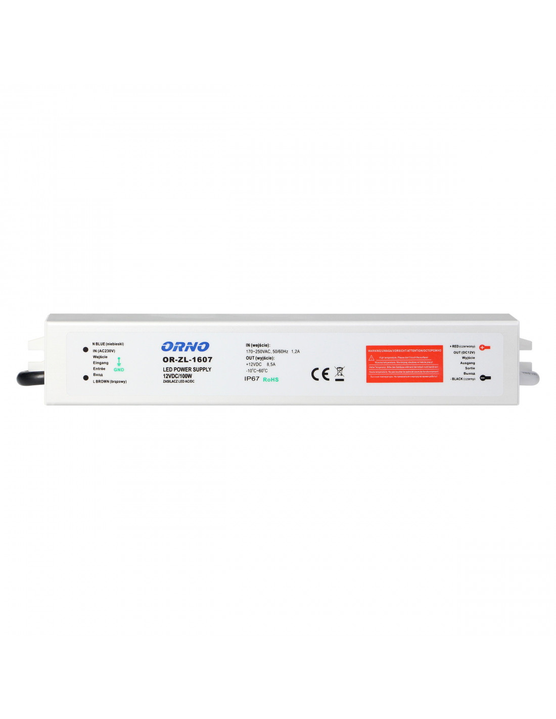Zasilacz przeznaczony do systemów oświetleniowych LED, m.in. pojedynczych diod, listew, taśm LED, żarówek, modułów, węży lub neonów, wyposażony w uchwyty pozwalające na przymocowanie do ściany lub sufitu. Charakteryzuje się wodoodporną (IP67), szczelną, metalową obudową, co umożliwia stosowanie w warunkach o podwyższonej wilgotności np. na zewnątrz budynku. Stałe napięcie wyjściowe niezależnie od dopuszczalnego obciążenia, zabezpieczenia: zwarciowe, przeciążeniowe, napięciowe.