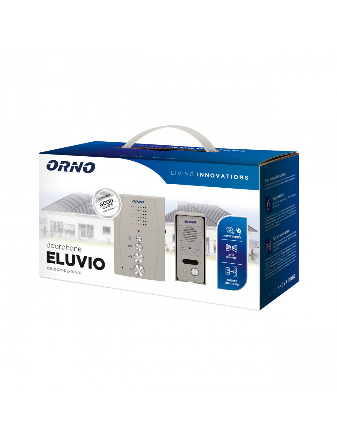 Zestaw domofonowy Eluvio przystosowany jest do montażu w domach jednorodzinnych, firmach, szkołach, przedszkolach, szpitalach itp. Jego niewielkich wymiarów panel zewnętrzny można zamontować natynkowo również na wąskich słupkach, a bezsłuchawkowy unifon wyróżnia się elegancją oraz ergonomiczną obudową i idealnie wpasuje się do każdego wnętrza. Płynna regulacja głośności oraz transmisja typu duplex pozwala na bezproblemowe prowadzenie rozmowy. Oprócz niezależnego, zdalnego otwierania elektrozaczepu unifon posiada dodatkowy przycisk do sterowania bramą . Model dostępny w trzech wariantach kolorystycznych (białym, szarym i czarnym) oraz w wersji z dwoma unifonami i funkcją interkomu.
