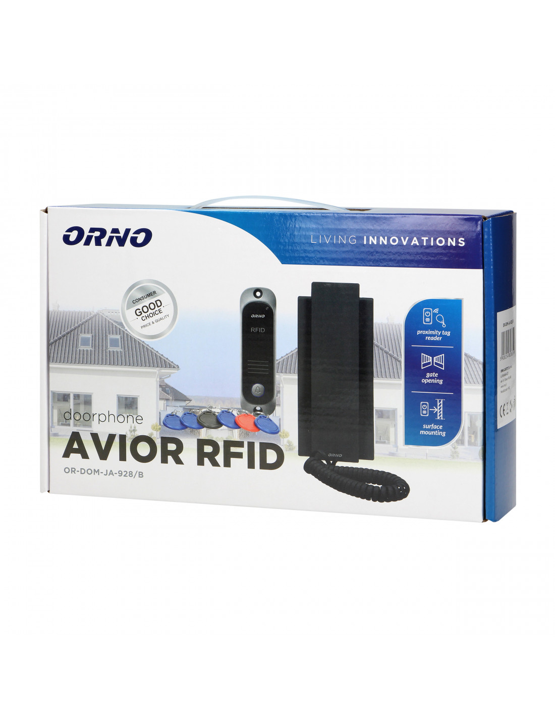 Zestaw domofonowy jednorodzinny z interkomem i czytnikiem breloków zbliżeniowych, czarny AVIOR