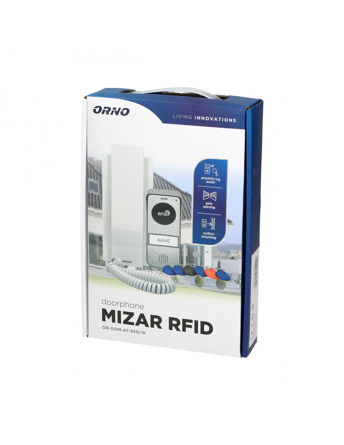Zestaw domofonowy jednorodzinny, przeznaczony do montażu natynkowego w budynkach jednorodzinnych, firmach, szkołach, przedszkolach, szpitalach, etc. Umożliwia zdalne prowadzenie rozmowy pomiędzy panelem zewnętrznym, a unifonem oraz bezpośrednie sterowanie ryglem elektromagnetycznym i bramą. Panel zewnętrzny posiada daszek ochronny. Urządzenie posiada czytnik breloków zbliżeniowych, regulację głośności, funkcję interkomu po zastosowaniu dodatkowego unifonu.