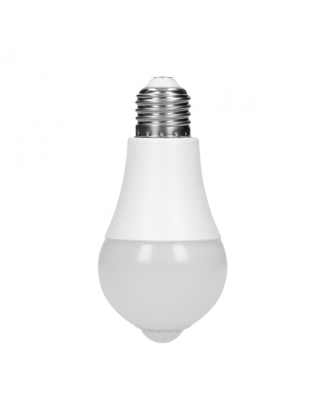 Nowoczesne źródło światła THAR LED w kształcie żarówki, wyposażone w diody LED SMD, które gwarantują dużą energooszczędność i charakteryzują się długą żywotnością. Ten produkt działa z mocą 12 W i emituje światło w ilości 1480 lm. Świeci naturalną białą barwą o temperaturze 4000K. Nasza żarówka LED posiada wbudowany czujnik ruchu PIR, który odpowiada za sterowanie źródłem światła po wykryciu ruchu w obszarze detekcji i przy zmniejszonym natężeniu światła <20lux. Zasięg wykrywania ruchu wynosi do 6m. Czas świecenia po wykryciu ruchu: ok.60 sek. Żarówka posiada gwint E27 i nie wymaga żadnej instalacji. Wystarczy ją wkręcić w miejsce standardowej żarówki, by w sposób automatyczny włączać i wyłączać lampę.