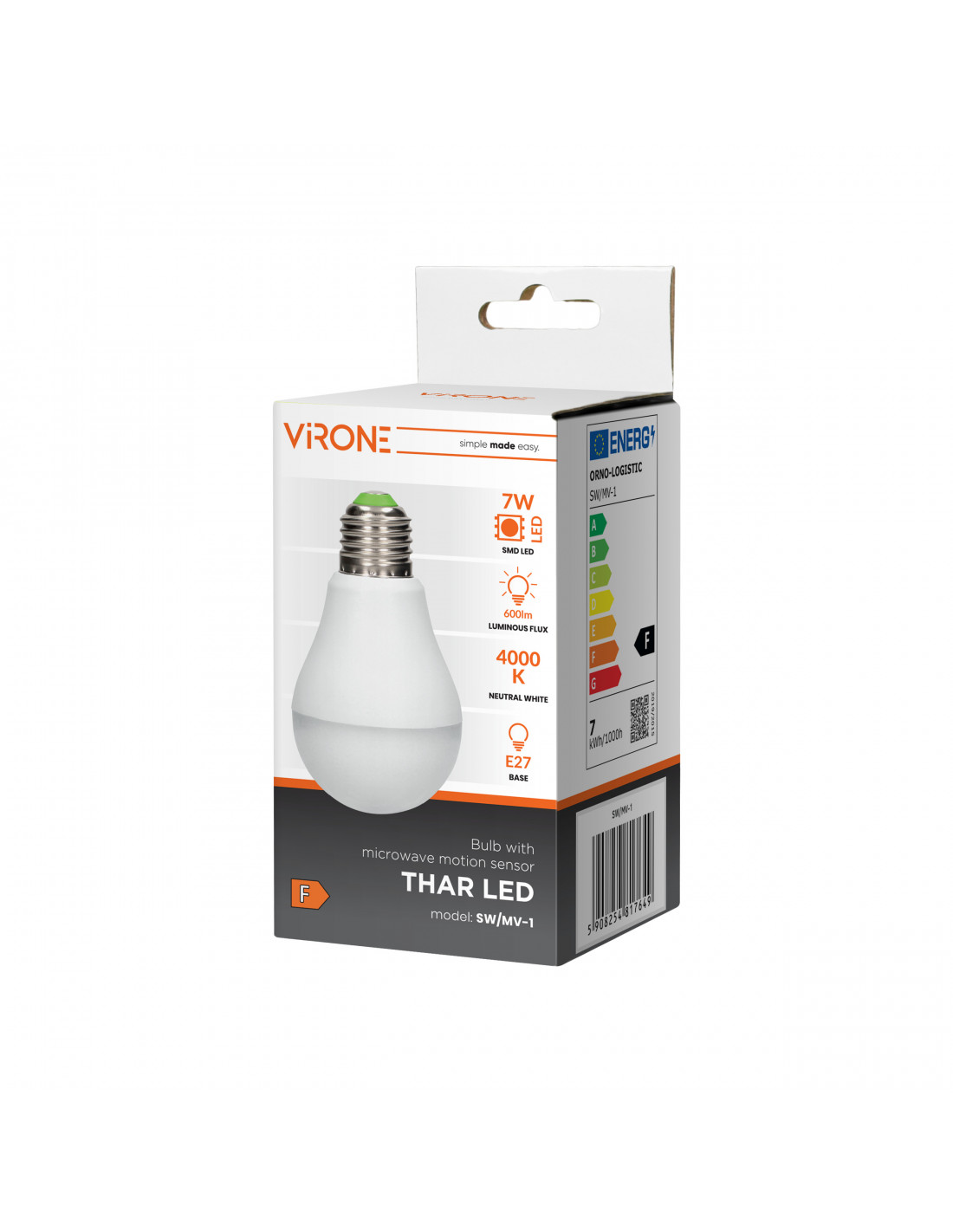 THAR LED 7W A60, żarówka z mikrofalowym czujnikiem ruchu, 600lm, 4000K, E27